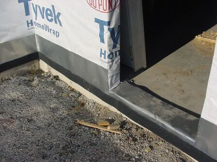 flashing protects the bottom of the wall from moisture.