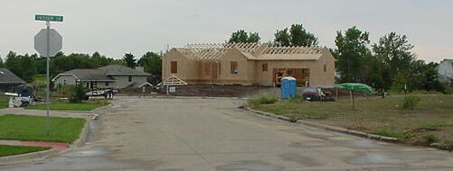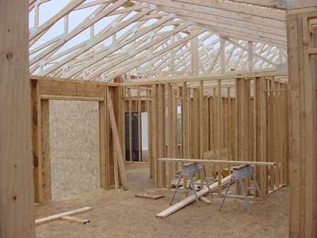 The roof trusses are in place. They would've gotten farther if it hadn't