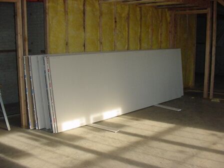 Gypsum Board is then placed on the walls. It is placed horizontally