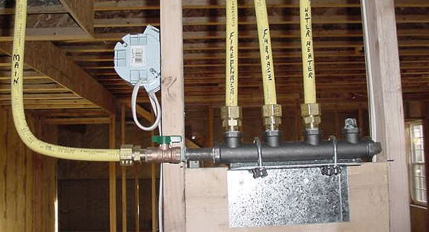 A closeup view of our gas line. The installer labelled where everything