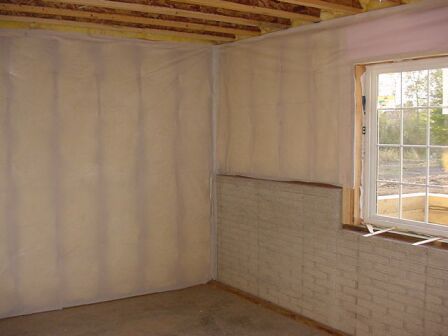 After insulation, the walls are covered with a moisture barrier. This
