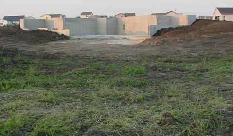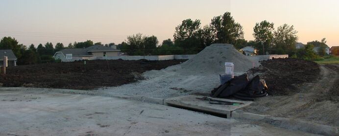 The front of the house. The gravel will be used as backfill