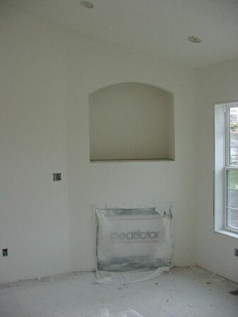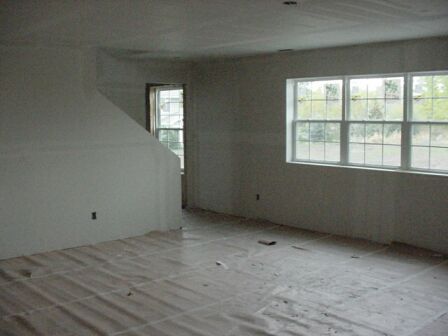 The gypsum board is in place now and the seams are taped, holes filled, and