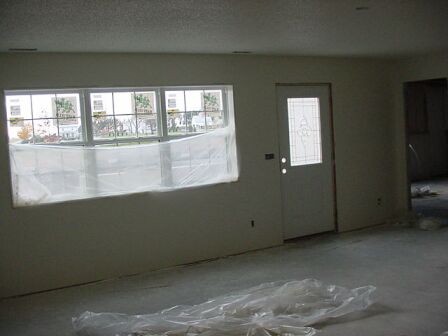 The windows were also covered while the first and second coat of paint was