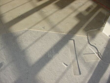 Vinyl underlayment is in place. This is put down first to create a
