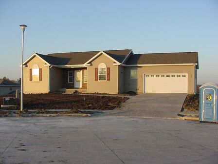 The front of the house with the garage doors. We will probably move