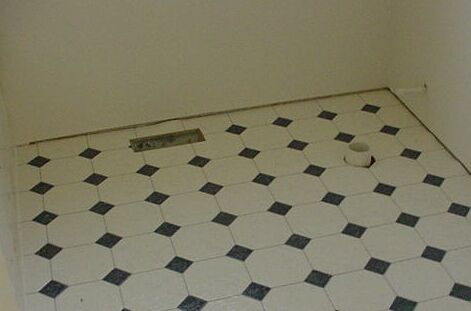 Openings in the vinyl floor are carefully cut.