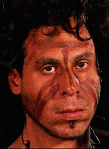 Nothing of his [Aghoo's] face was visible but a mouth bordered by raw flesh and a pair of murderous eyes. His squat stature exaggerated the length of his arms and the enormous width of his shoulders. His whole being expressed a brutal strength, tireless and without pity.